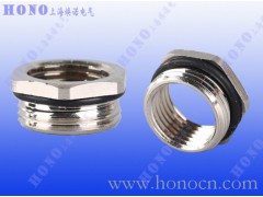 上海煥諾電氣六角黃銅鍍鎳減變徑、不銹鋼縮減變徑、尼龍縮減變徑又名HONO縮減環,螺紋轉換器,內外絲轉換器。采用黃銅鍍鎳、不銹鋼、尼龍制成,可將不同螺紋尺寸進行自由轉換,可根據客戶定制,生產不同螺紋長度,及其他不同螺紋之間的轉換。