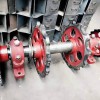 二、為搬運和安裝方便,出廠時將4米左右的牽引鏈條串接為一組,安裝時先打開尾部檢修口蓋及中部檢修口蓋,將牽引鏈條正確的(四孔板相對)從尾部或中部檢修口逐組連接后用手拉葫蘆分別將兩條同側牽引鏈條從提升機機殼內往上吊裝。牽引鏈條繞過頭輪后將其連接。用另一只手拉葫蘆將尾部鏈輪總成提到其可調范圍的最上端,使牽引鏈條繞過尾輪后連接。放下尾輪總成,這時尾輪尚未利用的張緊行程應不小于全行程的50%。如發現太高或太低,應在最后接頭處,加入或 卸下2節牽引鏈條,然后再行調整。